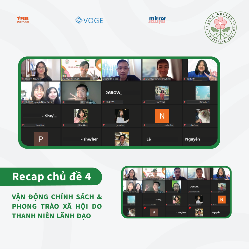 Chuỗi tập huấn bắt đầu với buổi khai giảng diễn ra tại TP. Hồ Chí Minh vào ngày 10/07/2022 và tiếp nối bằng 4 ngày tập huấn trực tuyến qua Zoom. Tuy trực tuyến, các bạn đã tích cực tham gia cả 4 ngày, tương ứng với 4 chủ đề: Giới và Tính dục 101; Nữ quyền 101; Quyền và Sức khỏe Sinh sản, Tình dục; Vận động Xã hội do Thanh niên lãnh đạo.